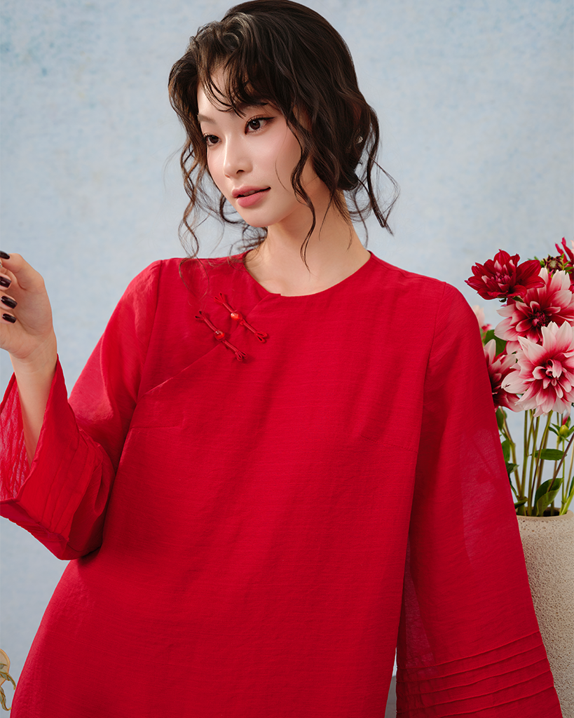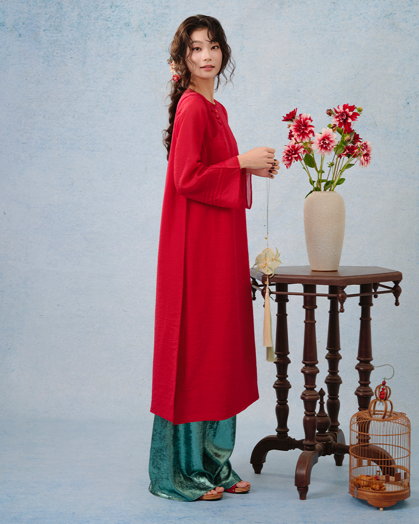 Phom dáng Cách tân: Thiết kế dáng suông nhẹ nhàng nhưng vẫn có độ lượn sóng tinh tế ở eo, giúp tôn lên nét thanh mảnh của cơ thể mà vẫn giữ được sự kín đáo, nhã nhặn.