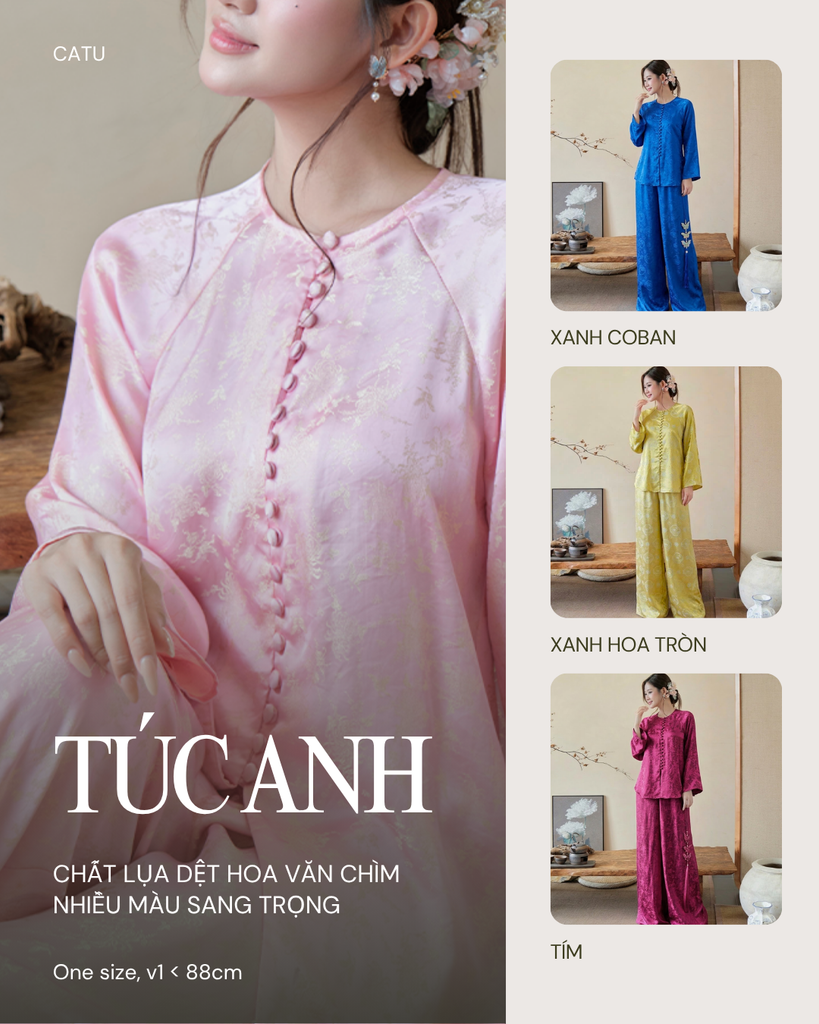 Vẻ Đẹp Hoài Cổ & Nữ Tính: Bộ bà ba Túc Anh mang lại vẻ ngoài trang nhã, lãng mạn.