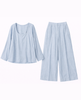 Phom Dáng: Quần dài ống rộng, suông đứng, tạo sự thướt tha và thoải mái khi di chuyển.