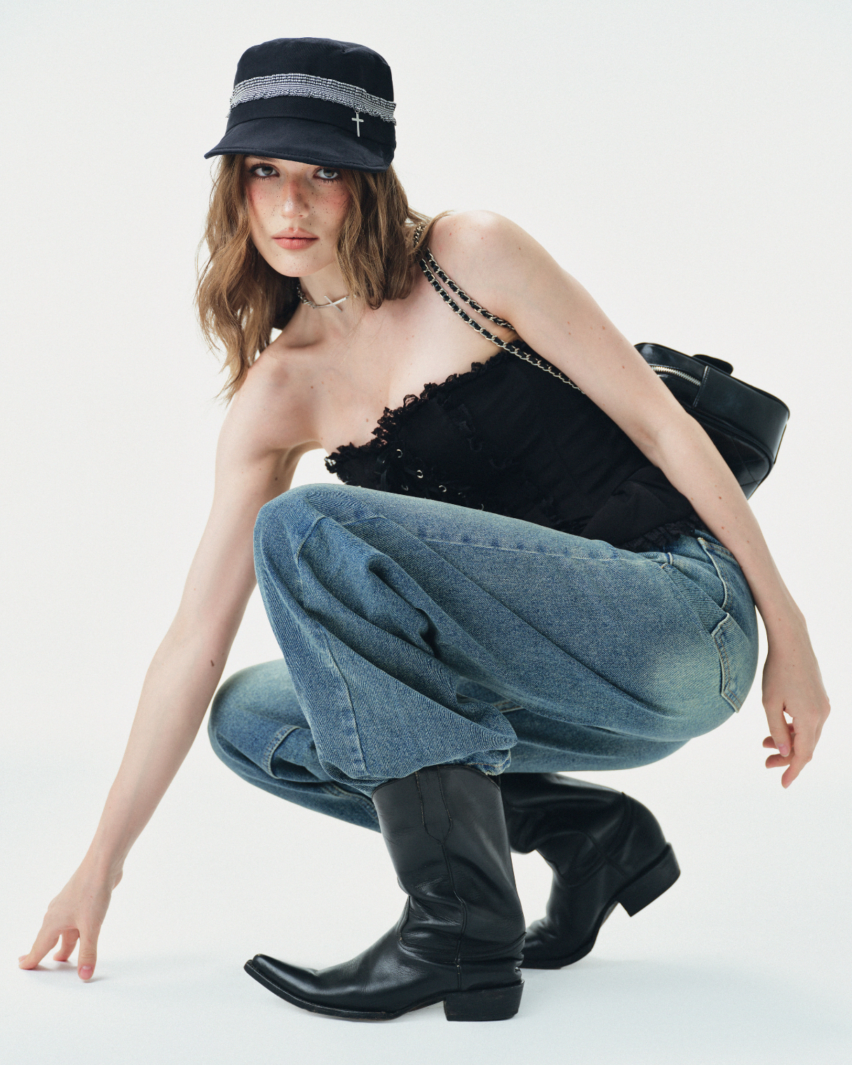 Phong Cách Cá Tính Mạnh Mẽ: Khi kết hợp với Quần Jeans Ống Rộng và Bốt Cao, chiếc áo mang lại vẻ ngoài nổi loạn và thời trang.