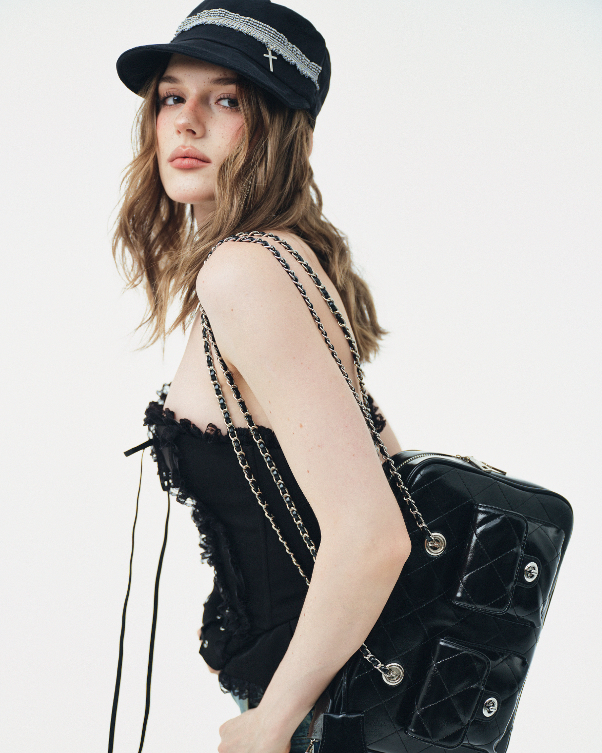Mặc Lớp Ngoài: Có thể mặc ngoài áo sơ mi trắng dáng rộng để tạo set đồ layering độc đáo theo phong cách Y2K/Goth.