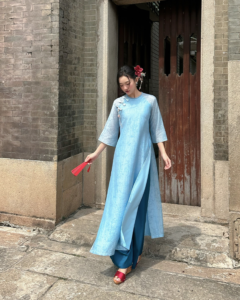 Phom Dáng: Áo dài cách tân, dáng suông hoặc chữ A nhẹ nhàng, tạo cảm giác thoải mái và thướt tha khi di chuyển.