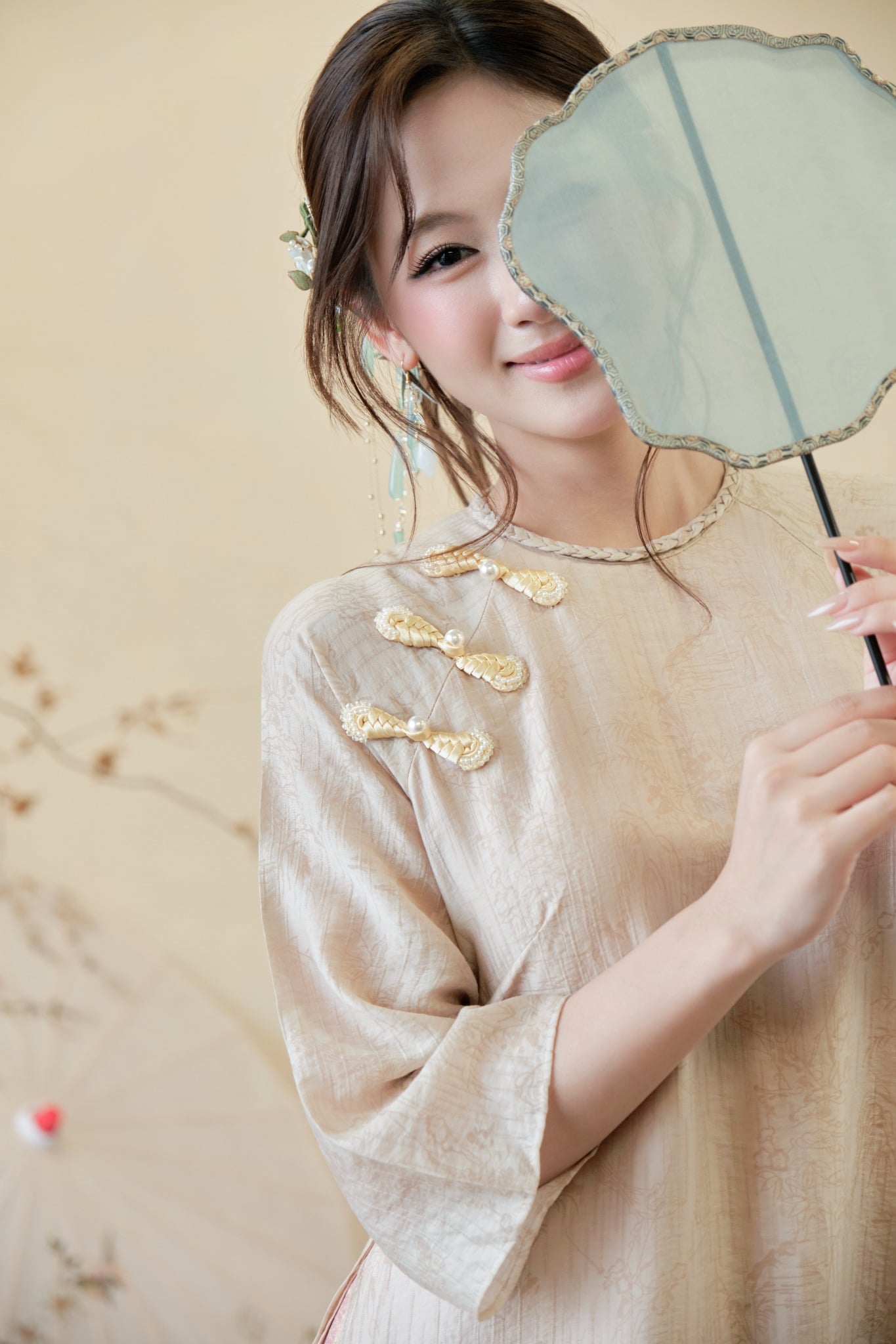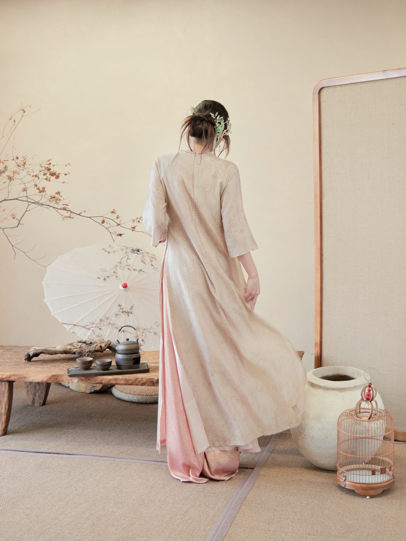 Cổ Áo: Cổ tròn/cổ trụ thấp hoặc cổ tàu truyền thống, có thể có chi tiết cúc/nút thắt nhẹ nhàng.