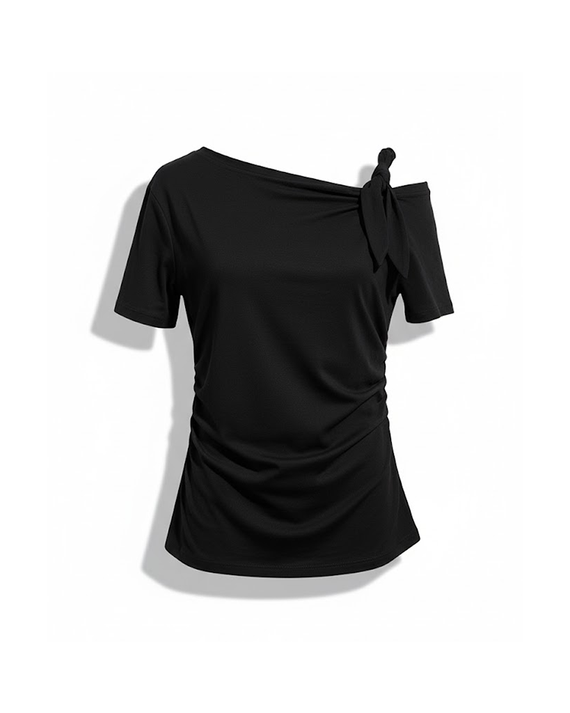Lani Top Black là item không thể thiếu cho những cô nàng theo đuổi phong cách gợi cảm và cá tính. Chiếc áo thun/top này được thiết kế với form ôm nhẹ giúp tôn lên đường cong cơ thể một cách tinh tế. Điểm nhấn độc đáo nằm ở phần cổ lệch vai bất đối xứng (one-shoulder) kết hợp cùng chi tiết nơ buộc/dây thắt trên vai.