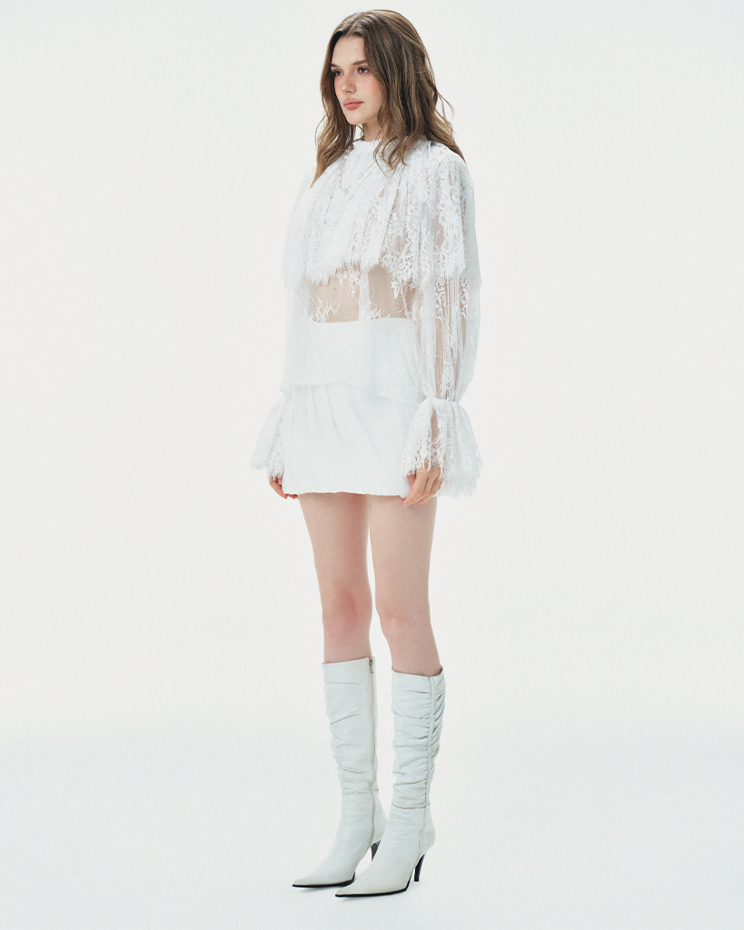 Lacely White Top – Chiếc áo ren mang vẻ đẹp cổ điển, lãng mạn và thời thượng! Chất liệu Ren cao cấp, mỏng nhẹ, có độ xuyên thấu. Form Suông Rộng Freesize thoải mái. Thiết kế Tay Chuông lớn bồng bềnh và Cổ Nhún Bèo tinh tế tạo điểm nhấn nổi bật. Màu Trắng tinh khôi, dễ dàng phối đồ theo phong cách Gothic/Vintage/Boho.