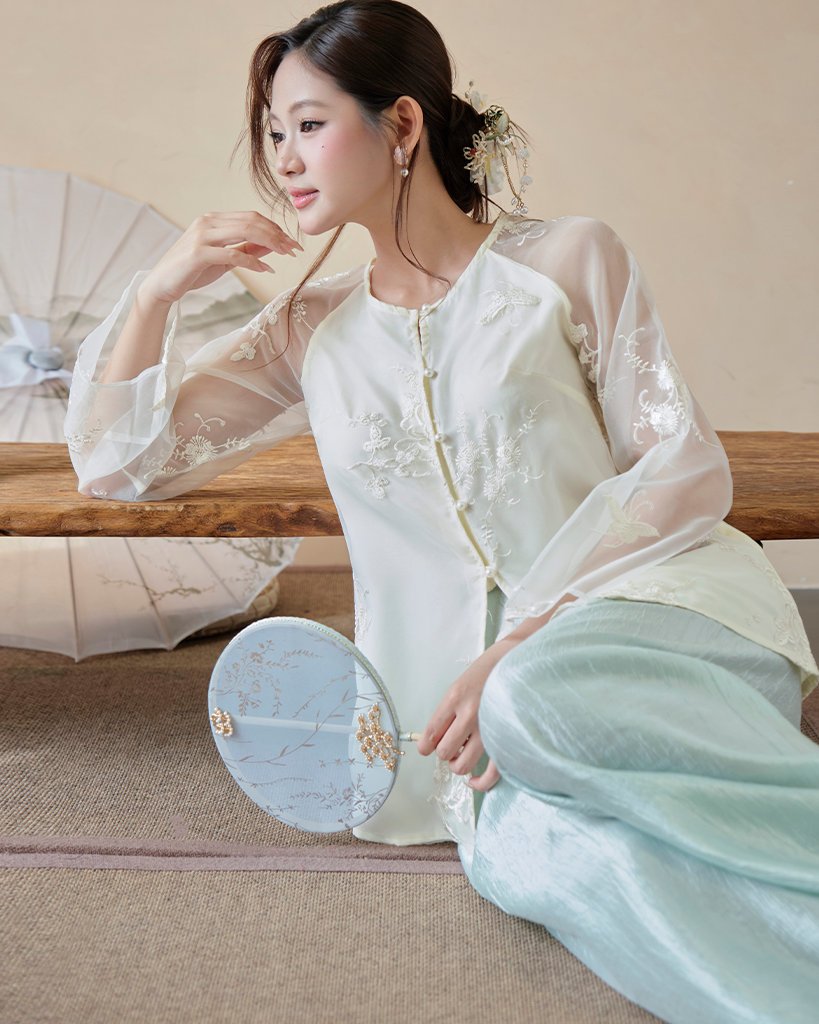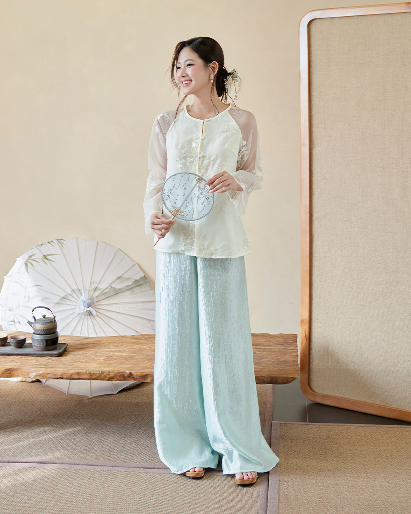 Áo thêu Ngọc Vân là hiện thân của vẻ đẹp mong manh, thuần khiết, mang lại phong thái dịu dàng, lãng mạn cho người mặc. Chiếc áo này là sự giao thoa tuyệt vời giữa chất liệu organza thêu cao cấp và phom dáng áo kiểu cổ trang cách tân, lý tưởng để du xuân và tạo điểm nhấn thanh lịch.
