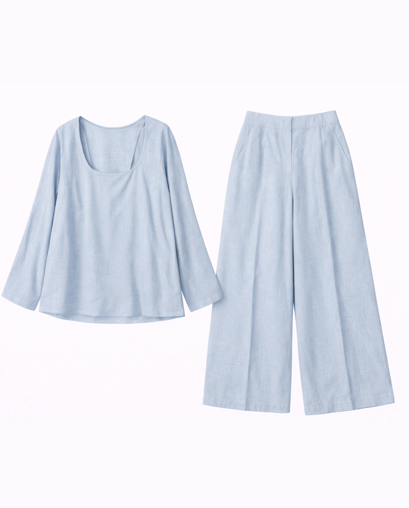 Đúng như tên gọi, Set Uyển Thanh mang đến một diện mạo thanh thoát, nhẹ tựa mây trời với sắc xanh dịu mắt. Thiết kế hướng tới sự thoải mái tuyệt đối nhưng không làm mất đi form dáng chỉn chu của người mặc.