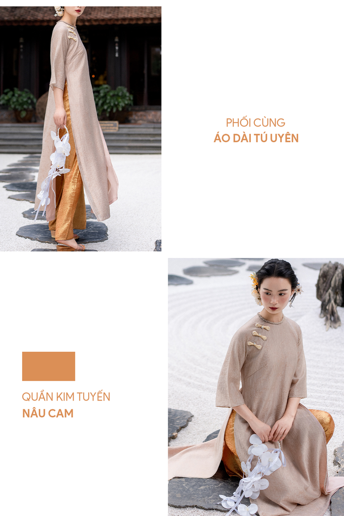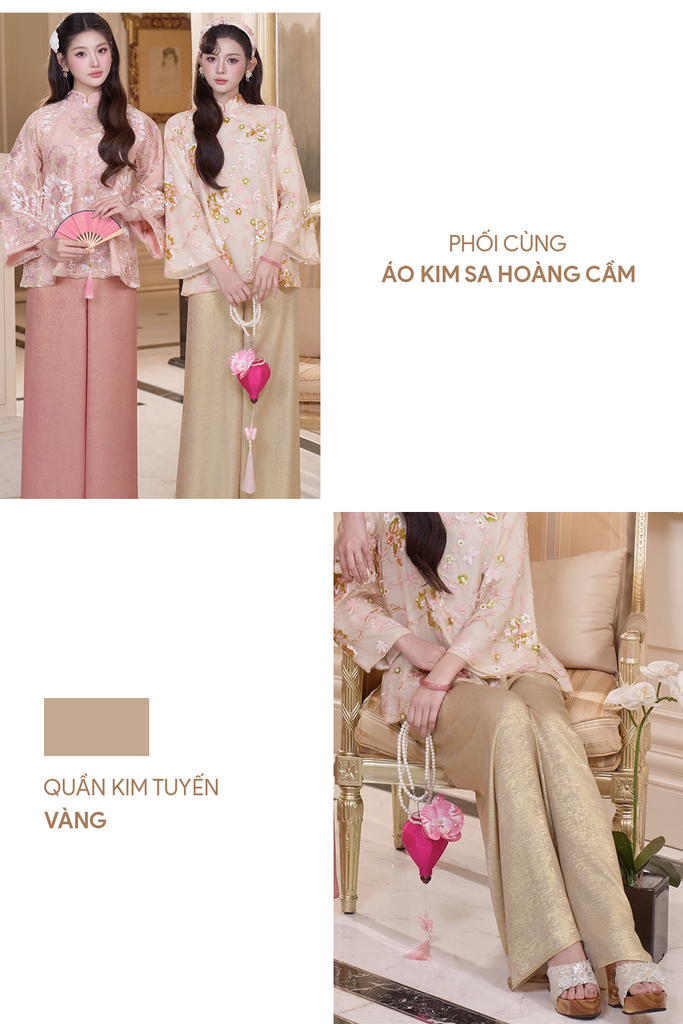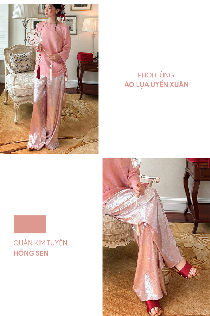 Chất Liệu Lụa Kim Tuyến Sang Trọng: Chất liệu lụa cao cấp được dệt kèm sợi kim tuyến (hoặc có độ bóng cao), tạo hiệu ứng ánh kim lấp lánh tinh tế, nâng tầm vẻ đẹp truyền thống.