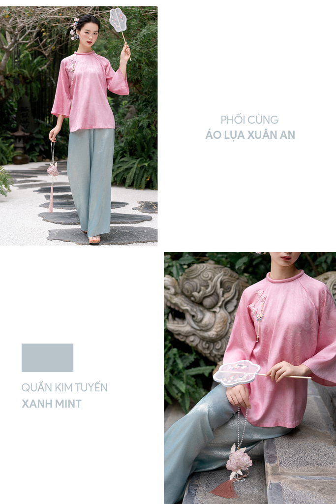 Bảng Màu Truyền Thống Đa Dạng: Nhiều lựa chọn màu sắc đẹp, dễ dàng kết hợp với các kiểu Áo Truyền Thống CATU khác nhau, đặc biệt là các tông Pastel (Hồng Ruốc/Xanh Bạc).