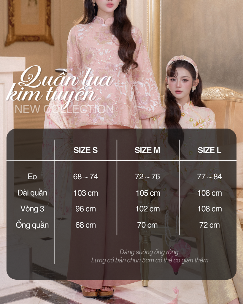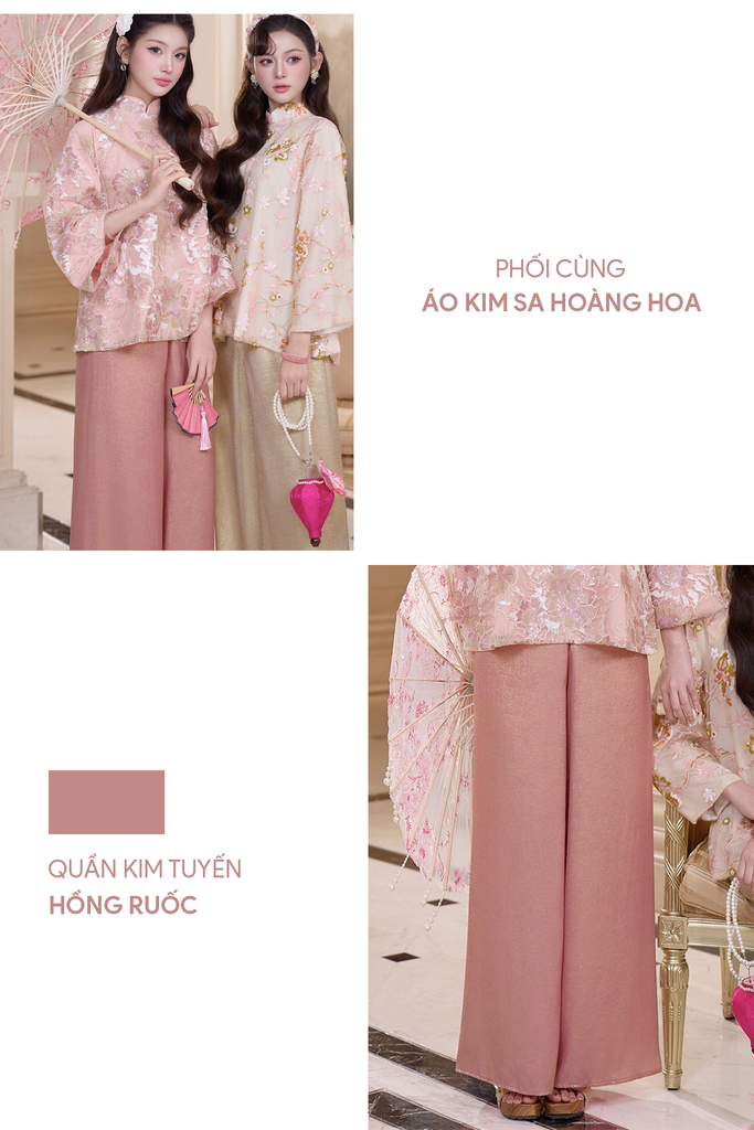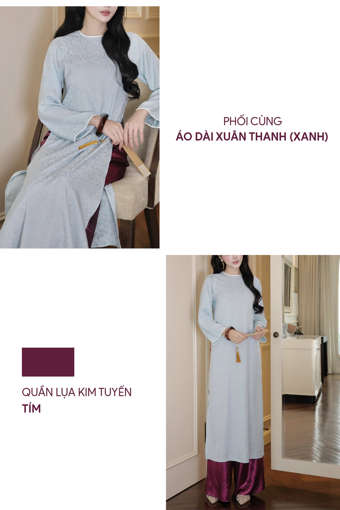 Quần Phối Áo Dài Hoàn Hảo: Dáng Ống Rộng tiêu chuẩn, giúp tà áo dài rủ đẹp và tạo cảm giác thoải mái khi mặc cùng áo dài.