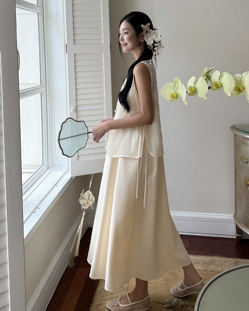 Set Lan Chi là sự hòa quyện tuyệt vời giữa phong cách truyền thống Á Đông và sự tiện dụng hiện đại. Thiết kế hai lớp độc đáo này mang đến cho nàng vẻ ngoài nhẹ nhàng, bay bổng như một nàng thơ bước ra từ tranh vẽ cổ, lý tưởng cho những ai yêu thích sự thanh thoát, duyên dáng.