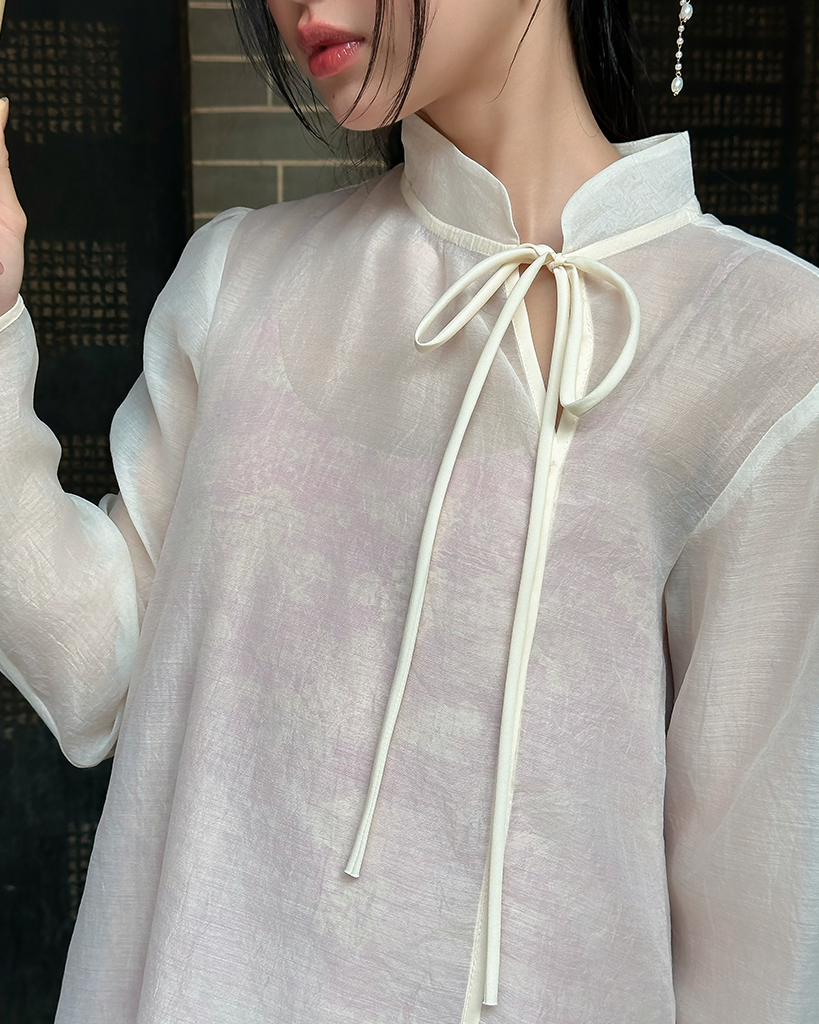 Chất liệu Tơ Cao Cấp: Set đồ được may từ chất liệu lụa tơ hoặc voan tơ mỏng nhẹ, có độ bóng mờ tự nhiên và đặc biệt là cực kỳ mềm mại trên da.
